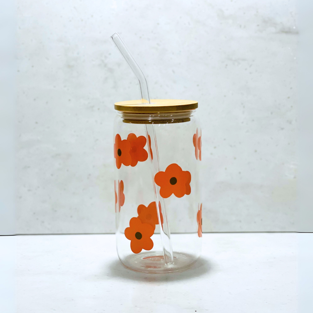 Orange Flowers Glass Cup
