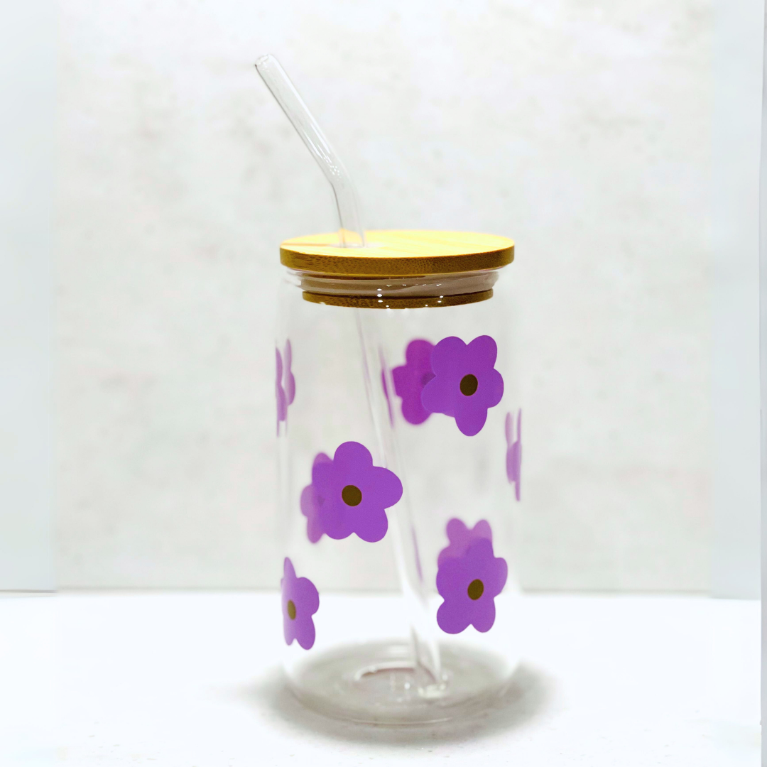 Purple Flowers Glass Cup
